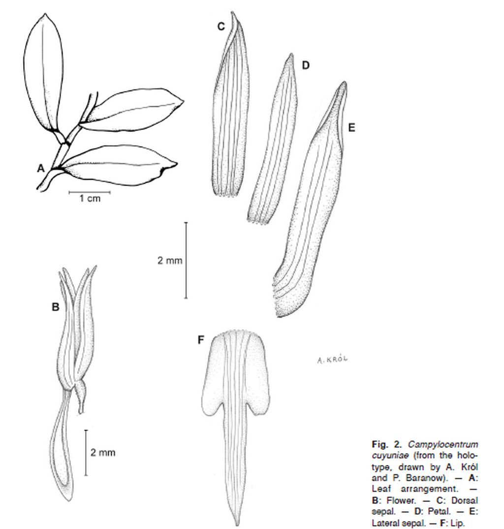 Campylocentrum cuyuniae Szlach. & Kolan. 2013 SECTION Campylocentrum TYPE Drawing by © A Krol and P Baranow/Szlachetko & Kolanowska and Two new species and a new Combination in Campylocentrum (Vandeae, Orchidaceae) from Guyana Szlachetko & Kolanowska _