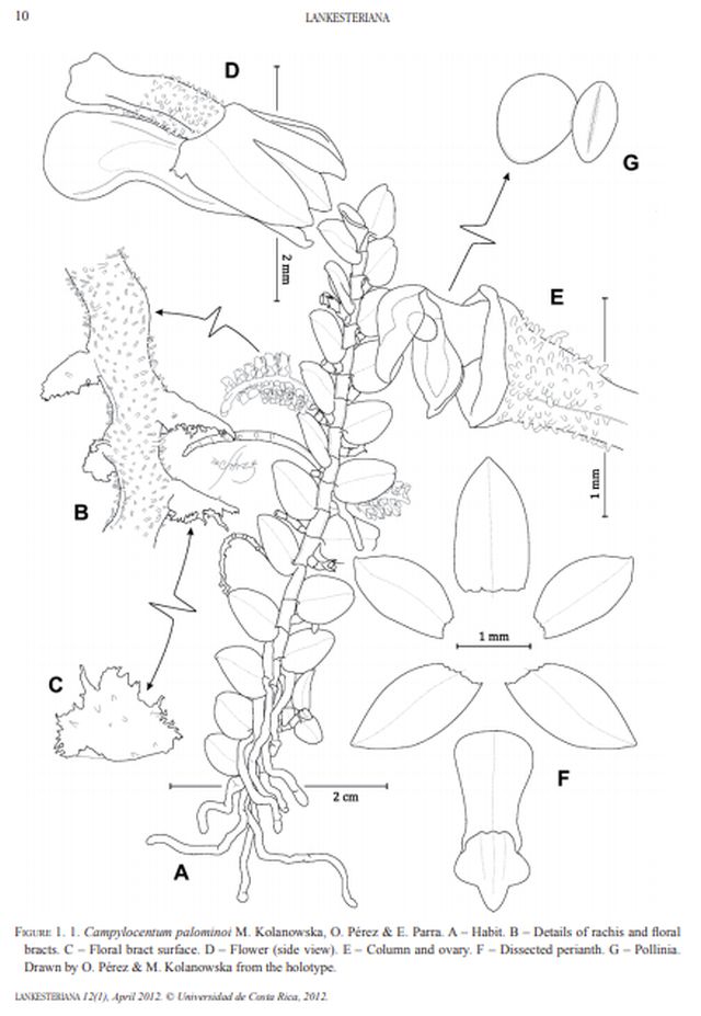 Campylocentrum palominoi Kolan., O.Pérez & E.Parra 2012 SECTION Campylocentrum Drawing by © Kolanowska and Perez