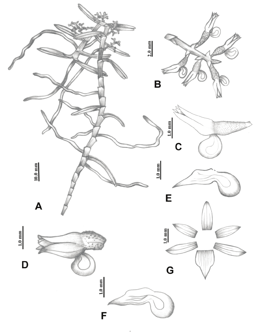 Campylocentrum schlechterianum E.M.Pessoa & M. Alves 2015SECTION Campylocentrum TYPE Drawing by © Pessoa and Carvalho and Research Gate Website - Three new species of Campylocentrum (Vandeae, Orchidaceae) from Brazil _