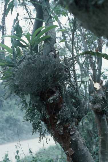 Found in Mexico, Belize, Guatemala, Honduras, El Salvador, Nicaragua, Costa Rica and Cuba? found on trees in humid forests, coffee plantations and open country at elevations up to 1850 meters as a medium sized, hot to cool growing epiphyte with ovoid to fusiform pseudobulbs carrying 6 to 8, oblong-lanceolate, plicate, deciduous leaves and blooms in the late spring till fall on an arching to suberect, 8" [25 cm] long, racemose inflorescence with bracts arising on a mature pseudobulb. The 3 to 10 fleshy, fragrant spice scented flowers do not open well, and they can be male [rightmost flowers in photo], female [leftmost flowers in photo] or hermaphroditic.