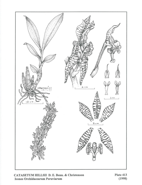 References W3 Tropicos, Kew Monocot list , IPNI ; *Icones Orchidacearum Tropicarum Plate 413 Bennett & Christenson 1998 drawing fide; The World Of Catasetum Holtz 1999; Orchid Digest Vol 65 #1 2001 fide; Icones Orchidacearum Tropicarum Plate 613 Bennett & Christenson 2001 drawing fide female flower; Rudolf Schlechter Die Orchideen Band 1C lieferung 44-45 pg 2763 - 2898 Brieger 2001;