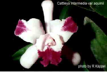 Orchids of Malaya Holttum 1957; AOS Bulletin Vol 27 No 9 1958 drawing ok; AOS Bulletin Vol 28 No 6 1959 photo fide; AOS Bulletin Vol 29 No 2 1960; AOS Bulletin Vol 32 No 4 1963 photo fide; Encyclopedia of Cultivated Orchids Hawkes 1965 drawing fide; AOS Bulletin Vol 35 No 10 1966; Orchid Digest Vol 34 #9 1970 drawing fide; Orchidaceae Brasilienses Pabst & Dungs Band I 1975 drawing fide; Orchidaceae Brasilienses Pabst & Dungs Band I 1975 as C intermedia var aquinii drawing fide; Die Orchideen 3 Auflage Bd 1 Sonderabdruck aus Schlechter Lieferung 10 576 - 632 Brieger, Maatsch and Senghas 1977 photo ok; The Brazilian Bifoliate Cattleyas and Their Color Variations Fowlie 1977; Orchid Digest Vol 44 No 1 1980 photo fide; AOS Bulletin Vol 49 No 11 1980 photo; Orquideologia Vol 15 #1 Luer & Escobar 1981; AOS Bulletin Vol 51 No 5 1982 as C intermedia var alba photo fide; Growing Orchids Vol 2 Rentoul 1982; AOS Bulletin vol 53 no 7 1984 photo fide; AOS Bulletin Vol 55 No 7 1986 photo fide; AOS Bulletin Vol 56 No 11 1987 photo fide; The Catttleya and their Relatives Withner Vol 1 1988 photo fide; Orchids Travel By Air A Pictoral Safari Mulder, Mulder-Roelfsema and Schuiteman 1990 photo fide; AOS Bulletin Vol 61 No 3/238/9 1991 photo; AOS Bulletin Vol 61 #3 1992 photo fide; Manual of Cultivated Orchids Bechtel, Cribb and Laurent 1992 photo fide; An Illustrated Encyclopedia of Orchids Pridgeon 1992; Orchids of Brazil McQueen 1993 photo fide; Manual of Orchids Stewart 1995; AOS Bulletin Vol 65 No 9 1996 photo fide; Orchid Digest Vol 61 #1 1997 photo fide; AOS Bulletin Vol 70 No 9 2001 as C intermedia var orlata photo fide; Icones Orchidacearum Peruviarum Plate 614 Bennet & Christenson 2001 drawing fide; AOS Bulletin Vol 71 No 2 2002 as C intermedia var orlata photo fide; Botanica's Orchids Laurel Glen 2002; AOS Bulletin Vol 72 No 6 2003 photo fide;AOS Bulletin Vol 72 No 8 2003 photo; AOS Bulletin Vol 74 No 8 2005 photo fide; The World's Most Beautiful Orchids Allikas & Nash 2005 photo fide; Flora's Orchids Nash & La Croix 2005; Genera Orchidacearum Vol 4 Part 1 Pridgeon, Chase, Cribb & Rasmusen 2005 photo fide; AOS Bulletin Vol 75 No 9 2006 photo fide; Miniature Orchids Frownie 2007; AOS Bulletin vol 78 No 11 2009 photo fide; Orchid Species of Peru Zelenko Bermudez 2009 photo fide; AOS Bulletin Vol 80 #11 2011 photo fide; AOS Bulletin Vol 80 #12 2011 photo fide; Orchid Digest Vol 79 #4 2015 as C intermendia fma orlata photo fide; AOS Bulletin Vol 84 #5 2015 photo fide; Orchid Digest Vol 80 #2 2016 Orchid Digest Vol 80 #2 2016; AOS Bulletin Vol 85 #4 2016 photo fide; AOS Bulletin Vol 85 #5 2016 as C intermedia var orlata photo fide; AOS Bulletin Vol 85 #9 2016 as C lindleyana drawing hmm; Orchid Digest Vol 81 #2 2017 photo fide; AOS Bulletin Vol 86 # 1 2017 photo fide; AOS Bulletin Vol 86 #3 2017 photo fide; AOS Bulletin Vol 86 #4 2017 photo fide; AOS Bulletin Vol 87 #1 2018 drawing fide; Orchid Digest Vol 83 #2 2019 photo plant only; AOS Bulletin Vol 88 # 6 2019 photo fide; AOS Bulletin Vol 88 #5 2019 photo fide; AOS Bulletin Vol 88 #8 2019 photo fide; Lankesteriana 19(3) 2019 as Cattleya aquini drawing fide