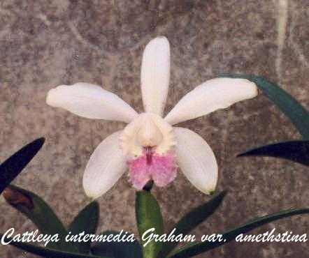 Synonyms Cattleya amabilis B.S.Williams 1862; Cattleya amethestina C. Morr. 1848; Cattleya amethystina C. Morren 1848; Cattleya aquinii Barb. Rodr. 1891; Cattleya candida hort.; Cattleya gibeziae Linden & Rodigas 1887; Cattleya ianthina hort. 1853; Cattleya intermedia f. amethystina (C.Morren) M.Wolff & O.Gruss 2007; Cattleya intermedia f. parthenia (Rchb.f.) F.Barros & J.A.N.Bat. 2004; Cattleya intermedia var. amethystina (C.Morren ex Lem.) Fowlie 1977; Cattleya intermedia var. angustifolia Hook. 1839; Cattleya intermedia var. gibeziae (L.Linden & Rodigas) L.Linden & Rodigas 1887; Cattleya intermedia var. macrochila Barb.Rodr. 1877; Cattleya intermedia var. pallida Lindl. 1836; Cattleya intermedia var. parthenia Rchb.f. 1888 ; Cattleya intermedia var. punctatissima Sander 1892; Cattleya intermedia var variegata Hkr. 1844; Cattleya intermedium Rchb.f 1861; Cattleya loddigesii Lindley var amethystina Lem 1853; Cattleya maritima Lindley 1836; Cattleya ovata Lindley 1836; Epidendrum intermedium Rchb.f 1861; Laelia lindleyana G. Nicholson 1885; Laelia lindleyana (Rchb. f.) H.J. Veitch 1887;
