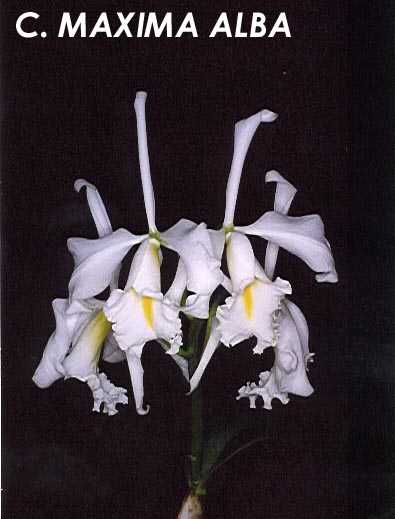 References W3 Tropicos, Kew Monocot list , IPNI ; Orchids from The Coast Of Ecuador Arosemana, Jurado, Estrada and Konanz 1988 photo fide; AOS Bulletin Vol 69 No 10 2000 as C maxima var alba photo fide; AOS Bulletin Vol 72 No 1 2003 photo fide; Orchid Species of Peru Zelenko Bermudez 2009 photo fide; Orchid Digest Vol 79 #4 2015 photo fide; AOS Bulletin Vol 85 #12 2016 photo fide; AOS Bulletin Vol 86 #8 2017 as C maxima var virginalis photo fide; AOS Bulletin Vol 88 #7 2019 photo fide;