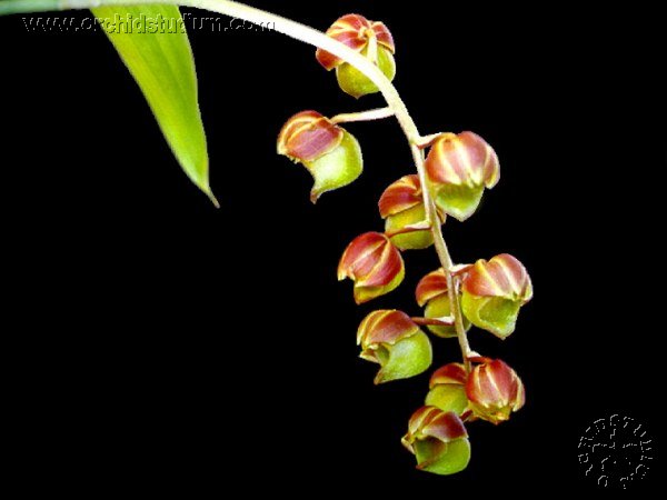 This is a medium sized, hot growing, epiphytic Brazilian species found in babassu [a palm] forest at elevations of 70 to 400 meters with clustered, fusiform pseudobulbs enveloped basally by to 13, arched, oblanceolate, plicate leaves that blooms in the fall in Brazil on a [male] basal, erect to arching, 16 3/4" [42 cm] long, racemose, several to many [to 31] flowered inflorescence with lanceolate stem clasping bracts, and resupinate flowers.