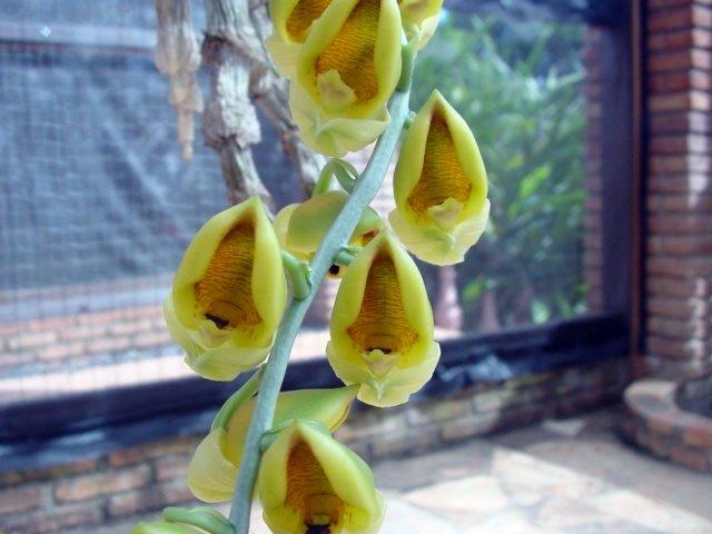This plant requires shady, airy, sparsely watered conditions and should be mounted in a way to let the pseudobulbs arch downwards.