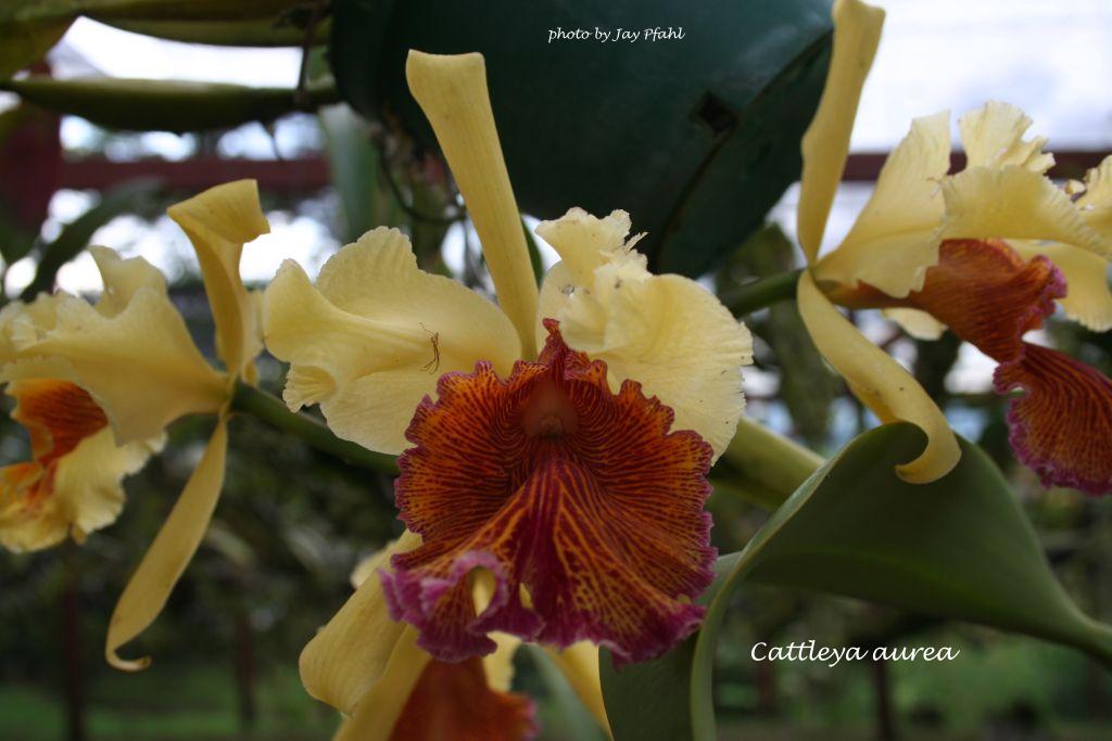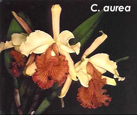 It is sometimes said to be synomonous with Cattleya dowiana Bateman 1886 but they differ with C aurea having larger flowers, wider petals and sepals and has a much truer yellow color, not coppery as in C dowiana. The C aurea also has a better presentation as well as a different scent.