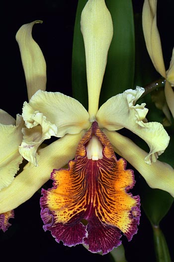 A Colombian, medium sized, hot to warm growing epiphytic species from the states of Risaralda, Antioquia and Choco' on rough barked trees at elevations of 300 to 1000 meters that blooms in the month of May in Colombia [about 2 months after C dowiana in Costa Rica] on a terminal, several [5 to 6] flowered, short inflorescence carrying fragrant, short lived flowers.