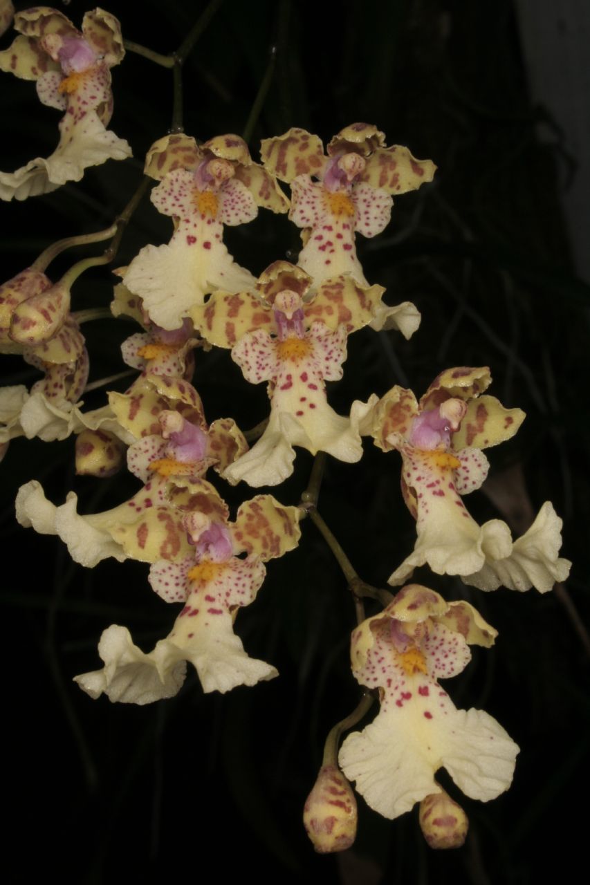 Found in Venezuela, Colombia and Ecuador at higher elevations around 2200 to 2600 meters as a small sized, cold growing epiphyte with pear-shaped to cylindrical, laterally compressed pseudobulbs, that are enveloped basally by several imbricating, scarious sheaths, carrying, a single, apical, elliptical, acute leaf that is grooved along the midvein dorsally and sharply keeled beneath that blooms in the summer on an axillary, 10 to 14" [25 to 35 cm] long, to 8 flowered, racemose inflorescence arising on a just developing pseudobulb carrying the flowers more towards the apex.