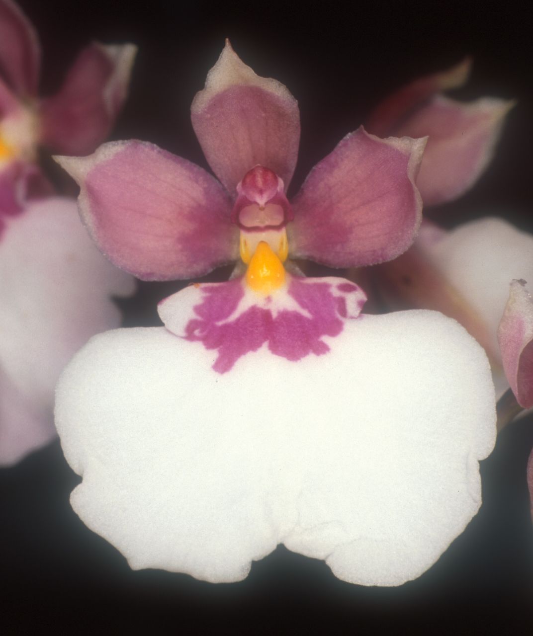Found in Venezuela, Colombia, Ecuador and Peru at elevations of 2500 to 3500 meters as a medium sized, cold growing epiphyte with clustered, narrowly ovoid to conical, somewhat compressed pseudobulbs enveloped basally by several pairs of imbricating sheaths and carrying 1 or 2 apical, linear-elliptic to oblanceolate, acute or acuminate leaves that blooms in the fall and winter on a 2' [60 cm] long, slender, erect or arching, purplish green in color, loosely paniculate or racemose, 3 to 12 flowered inflorescence carrying small to medium sized, variable colored flowers.