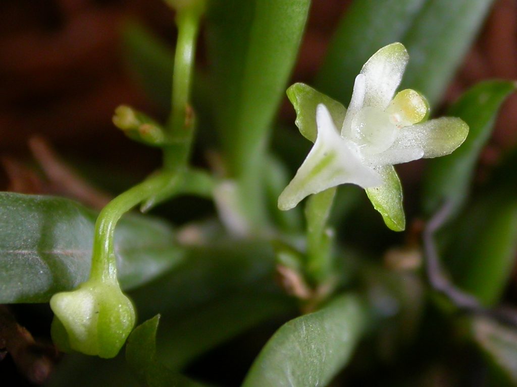 Found in Minas Gerais, Rio de Janiero and Sao Paulo states of Brazil at elevations around 1500 meters as a mini-miniature sized, cool growing epiphyte with small, elongate-ovoid, smooth becoming longitudinally striate with age, laterally compressed pseudobulbs enveloped basally by 1 to 2 leaf-bearing sheaths and carrying a single, apical, erect, coriaceous, linear-ligulate to oblanceolate, acute to acuminate, attenuate below into the conduplicate, petiolate base leaf that blooms in the fall and winter on a basal, 2" [5 cm] long, sinuous, slightly fractiflex few flowered inflorescence