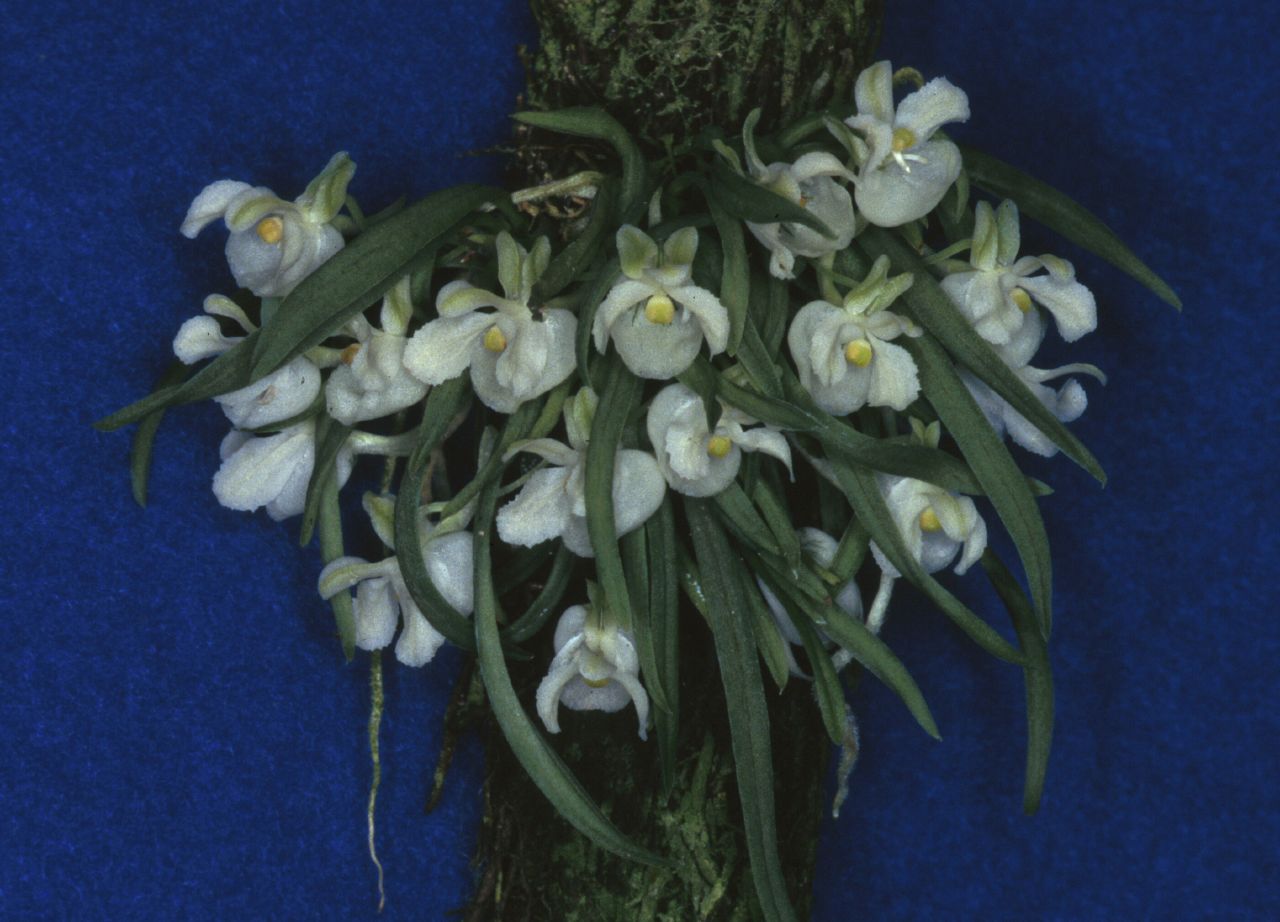 Found in Rio de Janiero state of Brazil as a mini-miniature sized, warm to cool growing epiphyte with a short rhizome, giving rise to clustered, ovoid-oblong, slightly compressed pseudobulbs and carrying a single, apical, erect, coriaceous, lanceolate-linear, slightly folded, basally attenuate leaf that blooms in the spring in Brazil on a basal, 1 1/4" long, 1 to 3 flowered inflorescence arising on a mature pseudobulb with a large tubular, acute bract below the middle and carrying large flowers for the size of the plant.