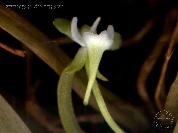 Found in Espirito Santo state of Brazil at elevations around 1100 meters as a mini-miniature sized, cool growing epiphyte with miniscule, elongate-oblong pseudobulbs enveloped basally by 2 leaf-bearing sheaths and carrying a single, apical, erect, coriaceous, oblong, acute, attenuate below into the base leaf that blooms in the late summer and early fall on an ascending, as long or longer than the leaf, 1.2 to 1.6" [3 to 4 cm] long, 4 to 6 flowered inflorescence