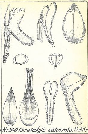 Ceratostylis calcarata Schltr. 1912 SECTION Ceratostylis Type Drawing by © Schlechter and The Swiss Orchid Foundation at the Jany Renz Herbaria Website