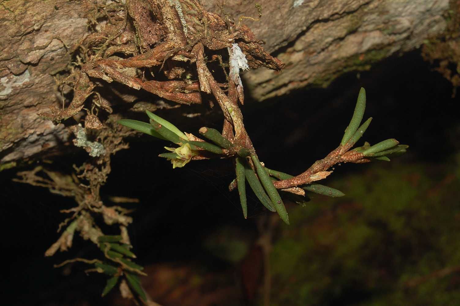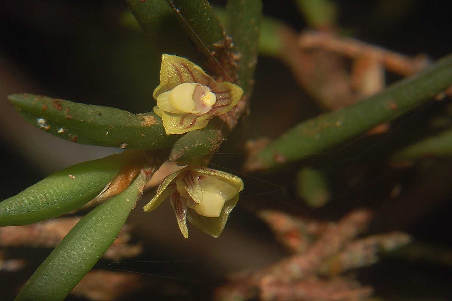 Found in penninsular Malaysia at elevations of 1600 meters as a small to medium sized, cool growing epiphyte with a rhizome enveloped by redbrown, conspicuously net veined sheaths and carrying almost terete, very fleshy leaves that blooms on very short single flowered inflorescence arising from the sheathed junction of a leaf with the stem.