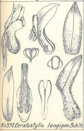 Ceratostylis longipes Schltr. 1912 SECTION Ceratostylis Drawing By © Lewis & Cribb 1991