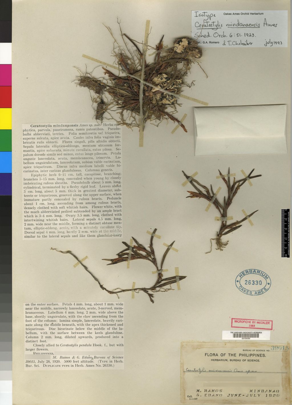Ceratostylis mindanaensis Ames 1923Collection Sheet by © Oakes Ames and The Epidendra Website