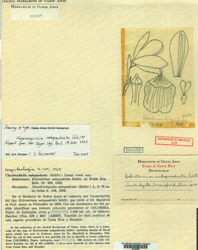 Synonyms Chondrorhyncha subquadrata (Schltr.) L.O. Williams 1956; *Kefersteinia subquadrata Schltr. 1923