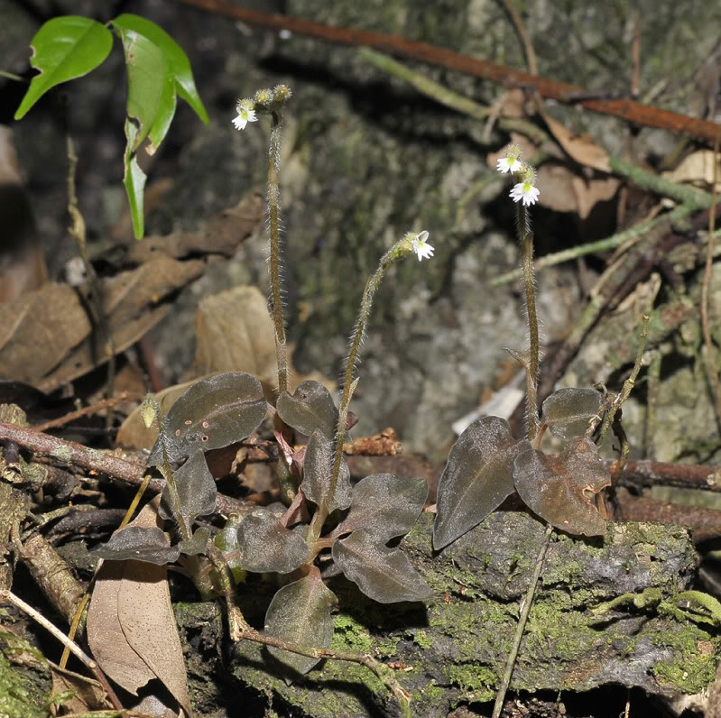 Found only rarely in the penninsular Malaysia in forests in deep shade as a small sized, warm to cool growing terrestrial with a fleshy, decumbent, short stem carrying a few, ovate acute, glabrous, gradually narrowing below into the petiolate base leaves that blooms in the spring on an erect, thin, papilose hairy towards the apex, 2 to 4 flowered inflorescence with a few bracts