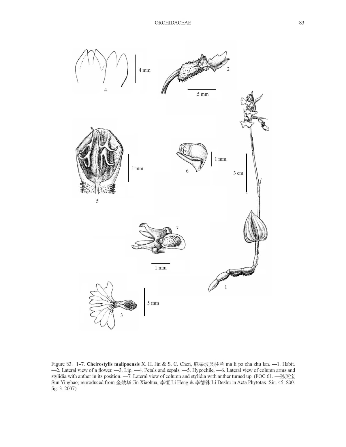 References W3 Tropicos, Kew Monocot list , IPNI ; Flora of China Vol 25 Zhengyi, Raven & Duyuan 2009; Flora of China Vol 25 Illustrations Zhengyi, Raven & Duyuan 2010 drawing fide; Atlas of Native Orchids of China Vol 1 Jin Xiaohua, Li Jianwu and Ye Deping 2019 photo fide