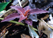Found in southern Taiwan at elevations around 400 meters as a mini-miniature sized, hot growing terrestrial with a reddish brown stem carrying 4 to 5, linear-ovate to lanceolate, reddish brown, reticulate venation, gradually narrowing below into the petiolate base leaves that blooms in the later winter on an erect, reddish brown pubescent, to 5 flowered inflorescence with 3 to 4 sheaths and lanceolate, hairy on the outside floral bracts.