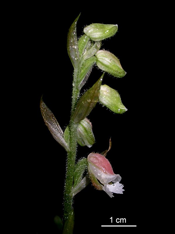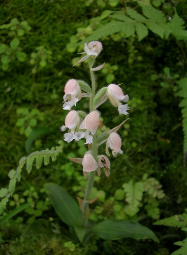 Found in southeastern Taiwan in broad leaved forests at elevations around 1000 meters as a miniature to small sized, warm to cool growing terrestrial with an ascending stem carrying 5 to 6, cauline to clustered at the stem apex, elliptic-oblong, acute, cuneate below into the petiolate base leaves that blooms in the spring on an erect, peduncle 1.2" [3 cm] long, with 2 to 3 sterile bracts sparsely pubescent, 2.4 to 2.8" [6 to 7 cm] long, subdensely 3 to 8 flowered inflorescence with lanceolate, abaxially pubescent, acuminate floral bracts and carrying slightly nodding flowers