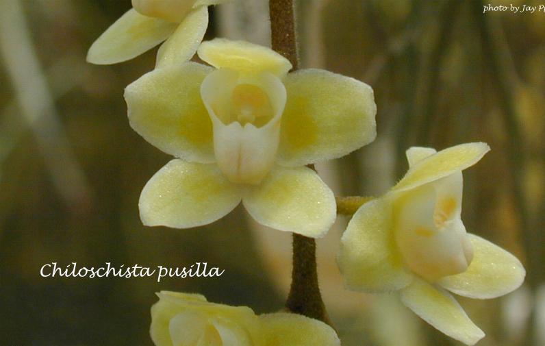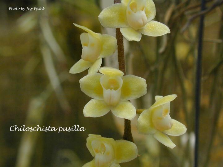 CAUTION I am very unsure of this determination. The first photo was proposed by Seidenfaden in 1988 [he states "I had no materiel and the placing of this photo here is no more than a guess"]. The Other photos are my own. Most likely [Kew and Chinese refererences] this species is Taeniophyllum pusillum but the photos I have are definitely of a Chiloschista so... Which Chiloschista it may be? The Chinese references depict a Taeniophyllum. I need more references to sort this one out. Most likely this species does not exist as a Chiloschista and therefore the photos are of other species.