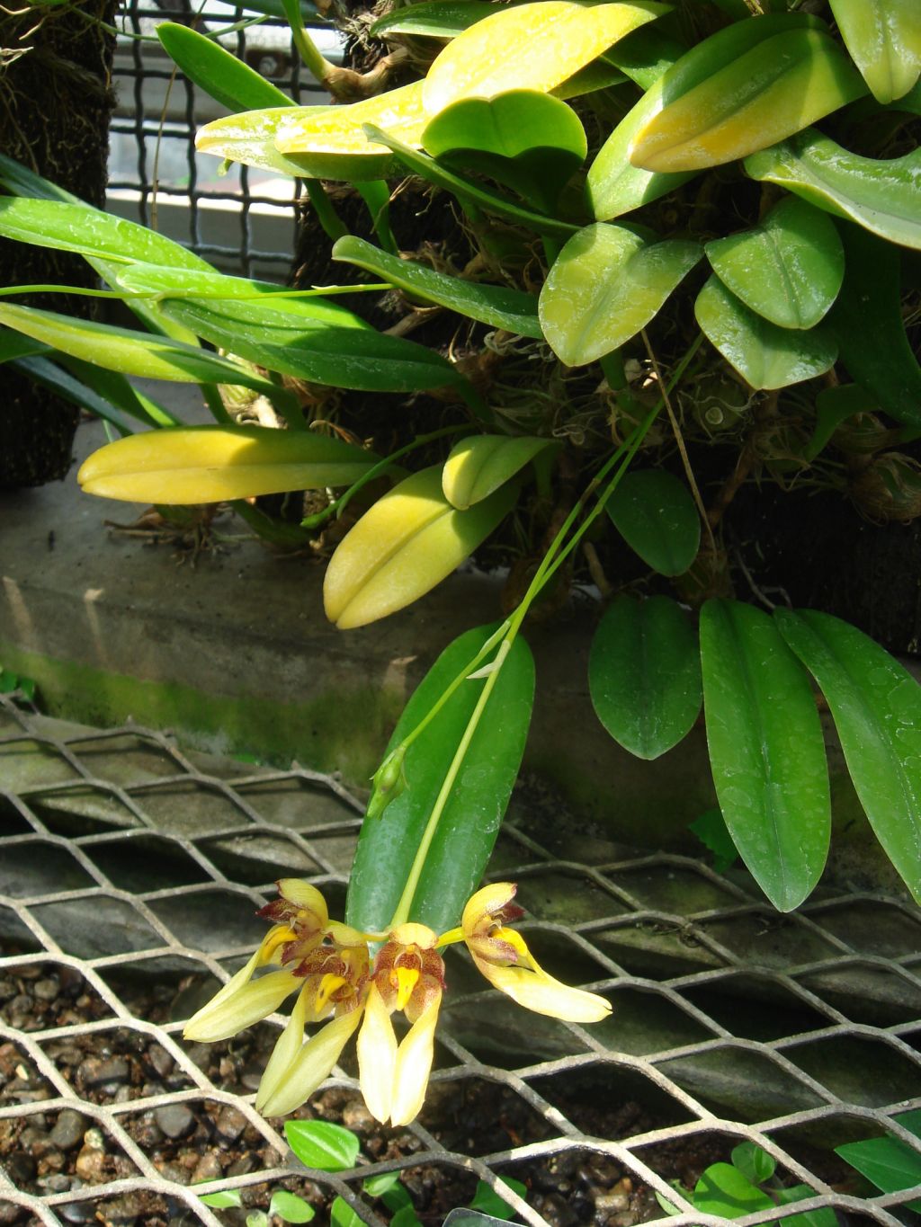 Found on the Island of Bonin near Tokyo, Japan as a small sized, cold growing epiphyte with ovoid, obscurely 4 sided, tetragonal pseudobulbs carrying a single, apical, erect, glabrous, coriaceous, shortly petiolate, oblong-ligulate, obtuse leaf that blooms on a basal, thin, wiry, erect, 6 to 8" [15 to 20 cm] long, few flowered, umbellate inflorescence with an acuminate bract.