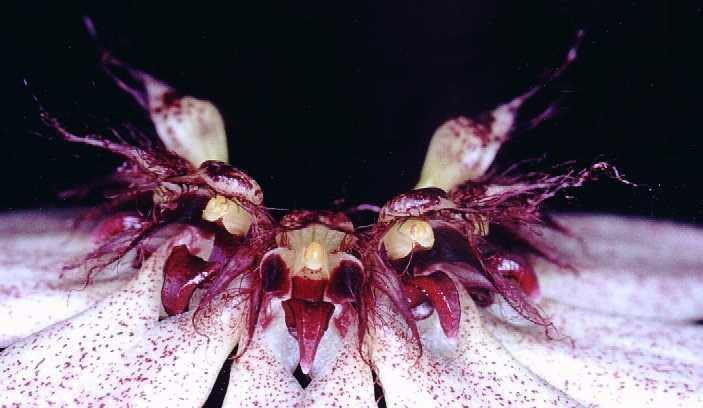 Synonyms Bulbophyllum abbreviatum ex Rchb.f Seidenfadden 1973; Bulbophyllum asperulum J.J.Sm. 1909; Bulbophyllum pulchellum Ridl. 1907; Bulbophyllum pulchellum var. brachysepalum Ridl. 1907; Bulbophyllum pulchellum var. purpureum Ridl. 1907; Cirrhopetalum abbreviatum Rchb.f. 1881; Cirrhopetalum asperulum (J.J.Sm.) Garay, Hamer & Siegerist 1994; Cirrhopetalum concinnum Hook.f. 1890; *Cirrhopetalum trigonopus Rchb. f. 1881; Phyllorkis ridleyana (Hook.f.) Kuntze 1891