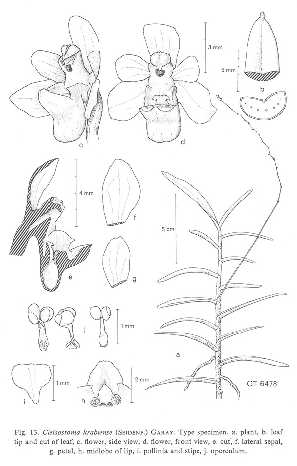 Cleisostoma krabiense (Seidenf.) Garay 1972 SECTION Subulata Seiden 1975 TYPE Drawing by © Seidenfaden and The Swiss Orchid Foundation at the Jany Renz Herbaria Website
