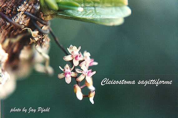 References W3 Tropicos, Kew Monocot list , IPNI ; Die Orchideen Von Java J.J.Sm. 1905 as Sarcanthus sagittatus; The Orchids of Thailand Seidenfaden & Smitinand 1964 as Sarcanthus linearlobata drawing good; The Orchids of Thailand Seidenfaden & Smitinand 1965 corrections as Sarcanthus linearlobata; Dansk Botansisk Arkiv Bind 29 N. R. 2 Orchid Genera in Thailand II Cleisostoma Seidenfaden 1975 as C sagittiforme drawing fide; Indian Orchids, A Guide to Identification and Culture Vol 2 Pradhan 1979 as C sagittiforme; Thai Orchid Species Rakpaibulsombat 1992 photo good; The Orchids of Bhutan Pearce & Crib 2001 drawing/photo; A field Guide to the Wild Orchids of Thailand Vaddhanaphuti 2001 photo good; Orchids of Bhutan Pearce & Cribb 2002 drawing/photo fide; A field Guide to the Wild Orchids of Thailand Vaddhanaphuti 2005 photo good; Malesian Orchid Journal Vol 4 2009 drawing/photo fideFlora of China Vol 25 Zhengyi, Raven & Deyuan 2009; Flora of China Vol 25 Illustrations Zhengyi, Raven & Deyuan 2010 drawing ok; The Wild Orchids in Yunnan Xu Xiang Ye & Liu 2010 photos fide; Malesian Orchid Journal Vol 9 2012 photo fide; Taiwania 60(3):107-116, 2015 - New species of the genus Cleisostoma in the flora of Vietnam Averyanov, Tich and Canh; Atlas of Native Orchids of China Vol 2 Jin Xiaohua, Li Jianwu and Ye Deping 2019 photo fide;