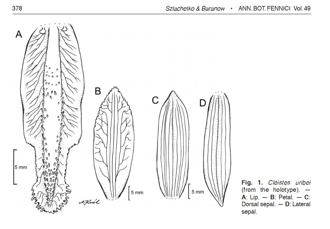 Cleistes uribei Szlach. & Baranow 2012 Drawing by © Krol, Szlach. & Baranow and Four new species of Cleistes (Orchidaceae, Vanilloideae) from Colombia Website
