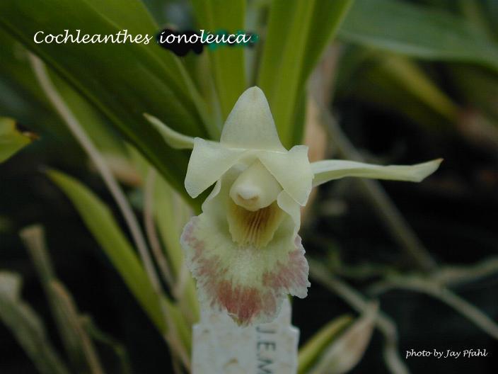 References W3 Tropicos, Kew Monocot list , IPNI ; Native Colombian Orchid Vol 1 COS 1990 as Cochleanthes ionoleuca photo fide; Rudolf Schlechter Die Orchideen Band 1B lieferung 27 1648 - 1712 Brieger 1993 as Cochleanthes ionoleuca; Native Ecuadorian Orchids Vol 1 Dodson 1993 as Cochleanthes ionoleuca photo fide; Flora Of Ecuador # 76 225[2] Dodson & Luer 2005 as Cochleanthes ionoleuca drawing fide; Orquideas de la Serrania del Baudo Misas Urreta 2006 as Cochleanthes ionoleuca drawing not = W marginata?; Huntleyas and Related Orchids Harding 2008 photo fide; Orquideologia Vol 28 #2 2011 photo fide;