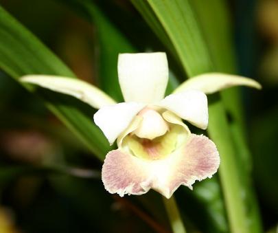 Found in Colombia and Ecuador at elevations of 30 to 1300 meters as a medium sized, hot to cool growing epiphyte with no pseudobulbs that has a fan of lanceolate, conduplicate below, acute leaves that blooms in the spring on an axillary, pendant, 2" [5 cm] long, single flowered inflorescence with a single, tubular below the middle bract.