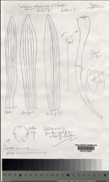 References W3 Tropicos, Kew Monocot list , IPNI ; A Checklist of the Orchids of Borneo Wood & Cribb 1994; Orchids of Sarawak Beeman & Wood 2001; The Genus Coelogyne Clayton A synopsis 2002 drawing fide; Les Coelogynes Elisabeth & Jean Claude George 2011 drawing fide
