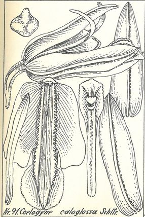 Coelogyne caloglossa Schltr. 1911 SECTION Speciosae Drawing by © Schlechter and The Swiss Orchid Foundation at the Jany Renz herbaria Website