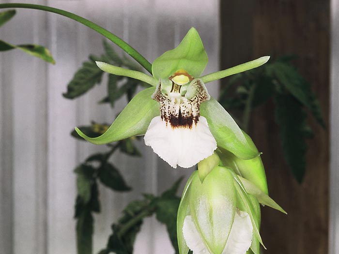 Found in the Philippines as a medium sized, cool growing epiphyte at elevations above 1000 meters with crowded, tapering, elongate pseudobulbs enveloped by several, dry, membraneous sheaths and carrying 2, apical, oblong-lanceolate, petiolate base leaves that blooms in the spring on an arching, slender, 3 to 6 flowered, 6" [15 cm] long inflorescence arising on a new growth with a few [5] fragrant, waxy flowers.