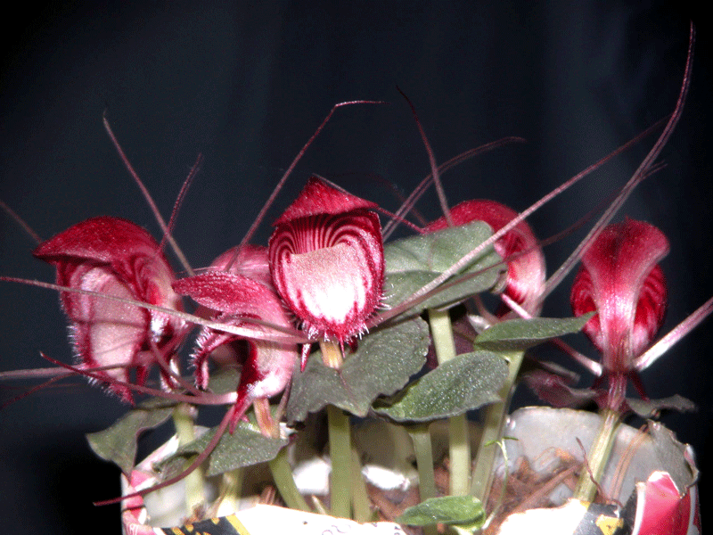 Found in Lam Dong province of Vietnam in primary, humid broad-leaved evergreen montane forest at elevations around 1400 to 1600 meters as a mini-miniature sized, cool growing terrestrial with spherical, warty tubers giving rise to an erect, terete, tinged with green to white stem provided with a finely haired at the base sheath and carrying a single, apical, cordate, surface slightly plicate, membranous, dull greyish-green, irregularly wavy margin, apex acute, sessile base leaf that blooms in the late spring and early summer on an erect, terminal, single flowered inflorescence.