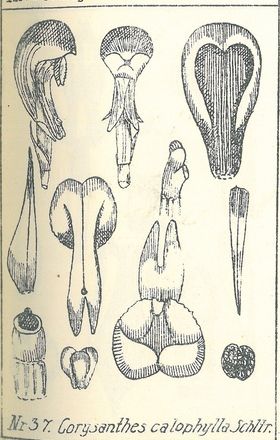 Corybas calophyllus (Schltr.) Schltr. 1923 SECTION Calcearia Type Drawing by © Schlechter and The Swiss Orchid Foundation at the Jany Renz Herbaria Website