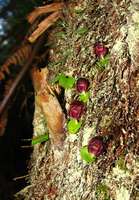 This miniature sized, cool to cold growing terrestrial or occasional epiphyte species is from New South Wales, Victoria and Tasmania Australia, occuring in moist sheltered sites in open, sclerophyll and rainforest with a mostly round, basally clasping, ground hugging single leaf that blooms in the winter and spring on a single flowered, short, erect inflorescence, pollinated possibly by fungus gnats.