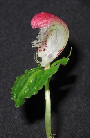 Found in New Guinea at elevations around 1000 meters as a mini-miniature sized, warm to cool growing terrestrial with a suborbicular to broadly ovate, apiculate, cordate-amplexicaul basally leaf that blooms in the late winter and early spring on an erect, subsessile to very short, glabrous, single flowered inflorescence with a lanceolate-subulate, acuminate bract.