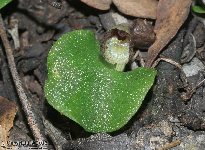 Corybas limpidus D.L. Jones 1991 Photo courtesy of The Species Orchid Society of Western Australia (Inc) and © Ron Heberle