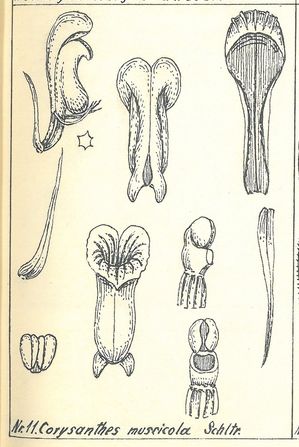 Corybas muscicola (Schltr.) Schltr. 1923 Drawing by © Schlechter and The Swiss Orchid Foundation at the Jany Renz Herbaria Website