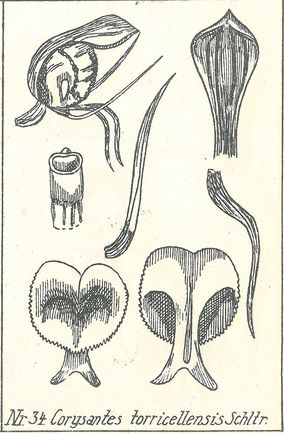 Corybas torricellensis (Schltr.) Schltr. 1923SECTION Calcearia Type Drawing by © Schlechter and The Swiss Orchid Foundation at the Jany Renz Herbaria Website