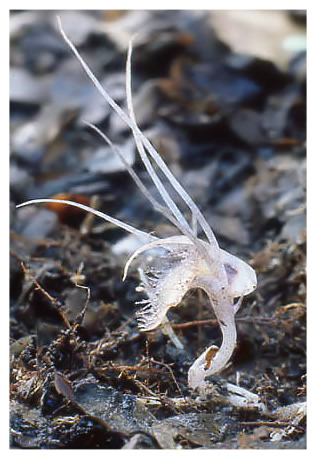 Found on the north island of New Zealand in lowland to sub-alpine, Beech and Tea-Tree forests as a mini-miniature sized, cold growing, mycoheterotrophic terrestrial without leaves that blooms in the winter through earlier spring on a short, erect, single flowered inflorescence that barely emerges through the leaf mold