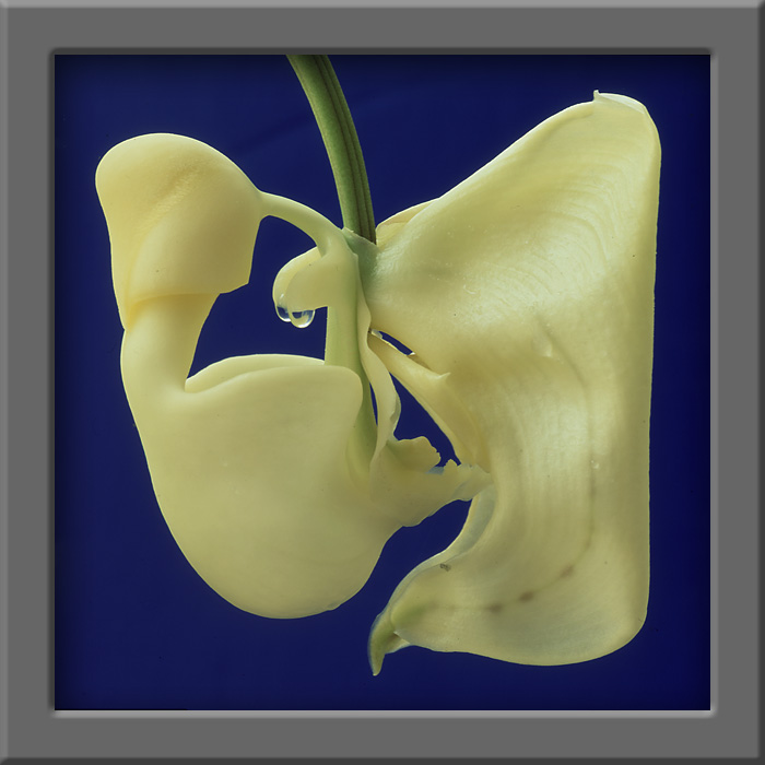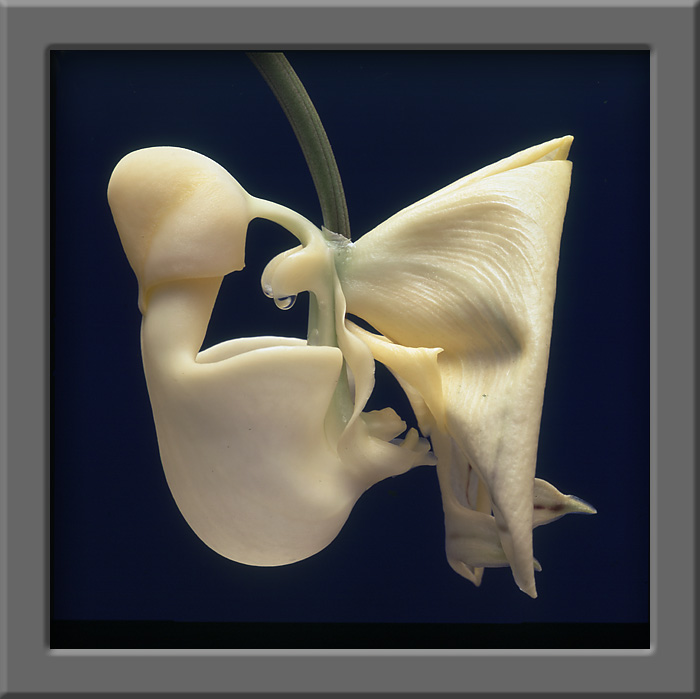 Found in Mexico?, Costa Rica and Panama in very wet forests at elevations of sea level to 600 meters as a medium sized, hot to warm growing epiphyte with cylindrical-conic, 6 ribbed pseudobulbs carrying 2, apical, plicate, erect-patent to suberect, elliptic-lanceolate, acute to acuminate, gradually narrowing below into the elongate petiolate base leaves that blooms in the spring on a pendant, to 12 to 30" [30 to 75 cm] long, 1 to 2 flowered inflorescence with several sheaths and with oblong, obtuse floral bracts and carrying large, fragrant flowers.