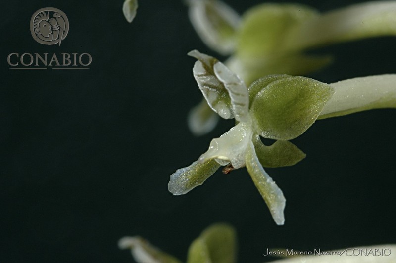 Found in Mexico, Guatemala and El Salvador in shady montane oak forests at elevations around 1200 to 1800 meters as a medium sized, pendulous, cool growing terrestrial orchid with basal, 5 nerved, green, gradually narrowing below into the elongate, petiolate base leaves that blooms in the later summer and early fall on a terminal, erect, to 18" [to 45 cm] long, rachis cylindric, 3 to 6" [7.5 to 15 cm] long, 40 to 50 flowered inflorescence