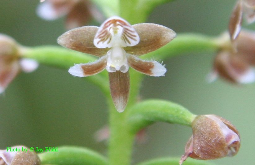 Found in Mexico, Guatemala, El Salvador, Honduras, Costa Rica, Panama, Colombia, Ecuador, Venezuela, Peru, Bolivia, and western Argentina in cloud forests at elevations around 1200 to 2800 meters as a miniature to small sized, cool to cold growing terrestrial with a few basal, matte clear green with dark green, elliptic, acute, petiolate base leaves that blooms in the late winter and again in the fall on an erect, purple, narrow, peduncle, remotely several sheathed, glabrous below, pubescent above, to 18" [45 cm] long, cylindric rachis, to 6" [15 cm] long, loosely to subdensely many [40] flowered inflorescence