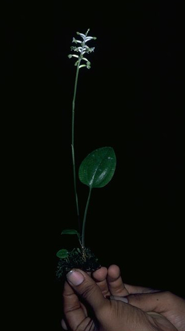 Found in Ecuador and Peru in wet montane cloud forests at elevations of 2400 to 2500 meters as a miniature to small sized, cold growing terrestrial with elliptical, dark green, abruptly narrowing below into the long petiolate leaves that blooms in the fall on an erect, non-foliaceous, 8" [20 cm] long, several flowered inflorescence with a few spaced glabrous bracts