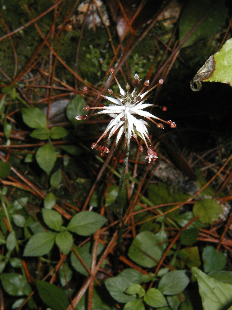 Found in central and southern Mexico and Guatemala in shaded ravines in rich humus soils amongst rocks at elevations around 1200 to 2250 meters as a miniature to small sized, cool to cold growing terrestrial with 2 to 3, basal or nearly so, broadly ovate, subcordate, acuminate, gradually narrowing below into the elongate, petiolate base leaves that blooms in the late summer and fall on a terminal, erect, 4 to 12" [10 to 30 cm] long, peduncle, with, narrow, fragile bracts, rachis to .8" [2 cm] long, subumbellate, usually broader than long, 10 to 20 flowered inflorescence with pale scarious, ovate, long acuminate floral bracts and carrying the flowers curved out and horizontally spreading.